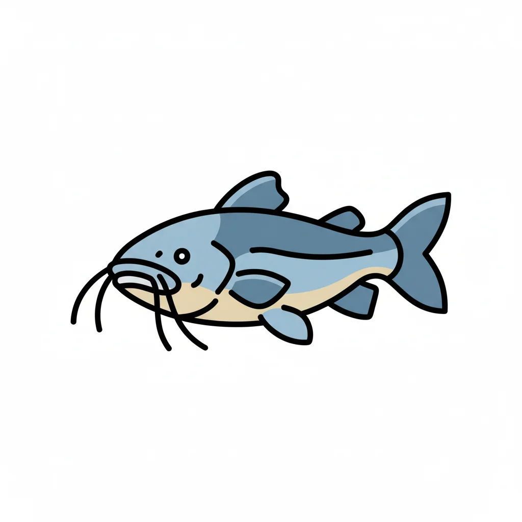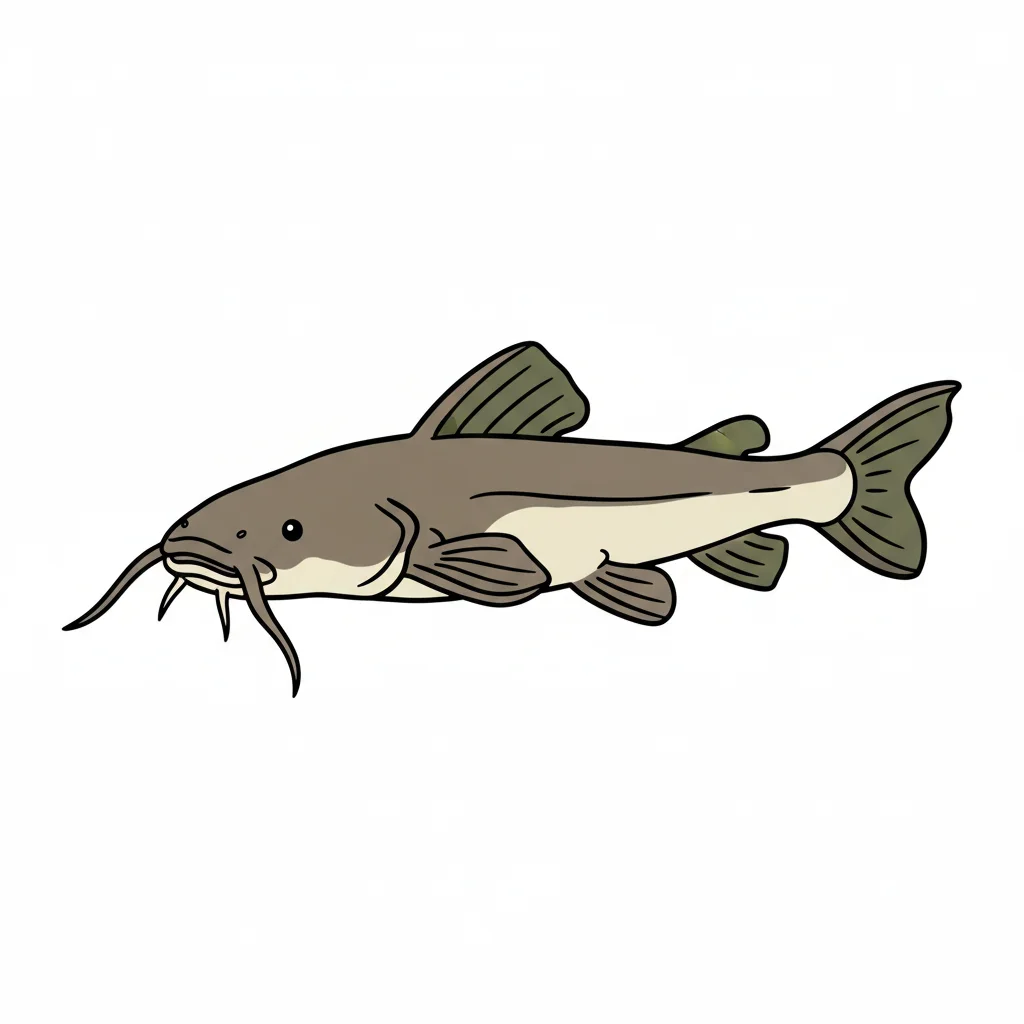 Ein gezeichneter Wels mit Bartfäden und graublauer Färbung.