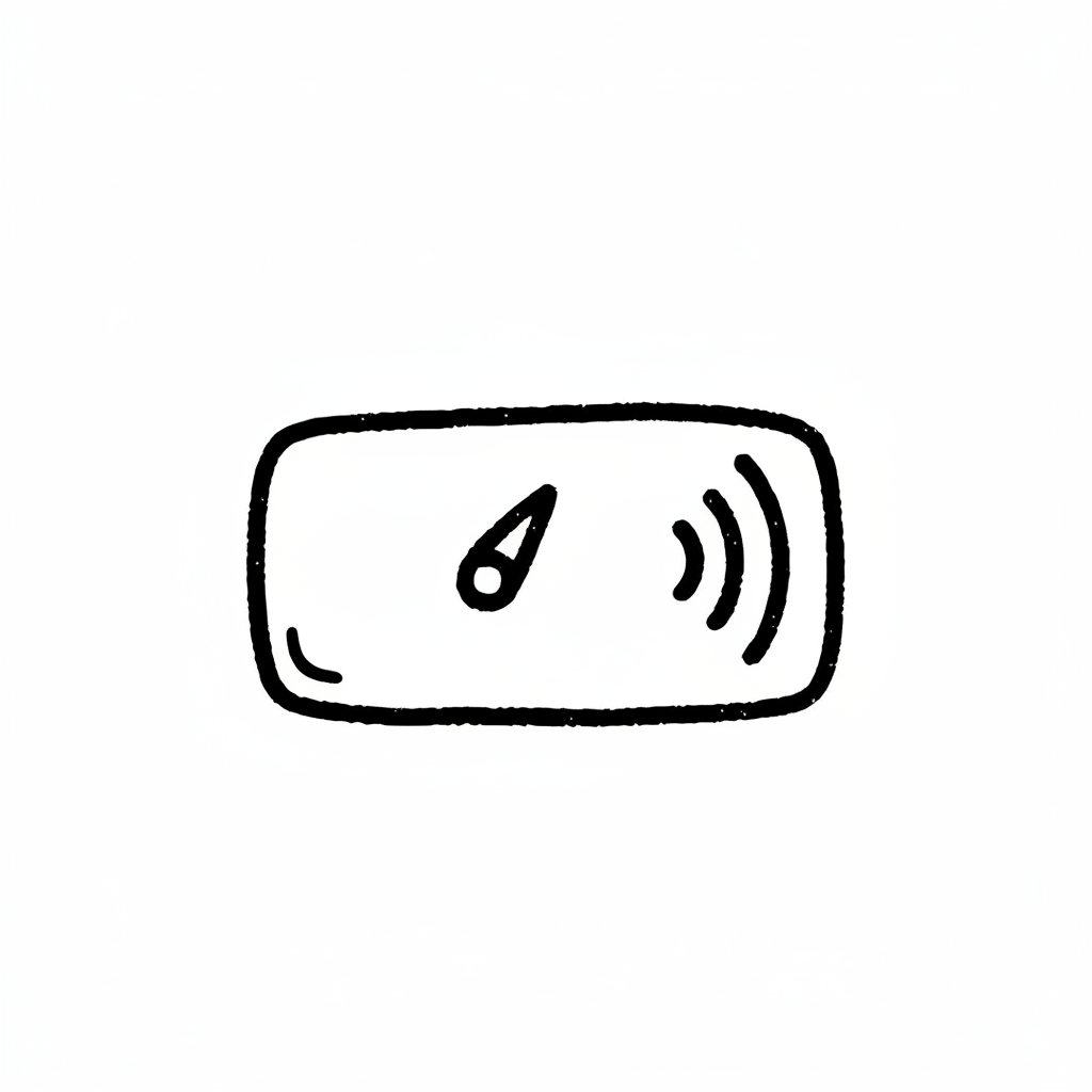 Handgezeichnetes Symbol einer kontaktlosen Karte mit Funkwellen, oft für RFID oder NFC verwendet.
