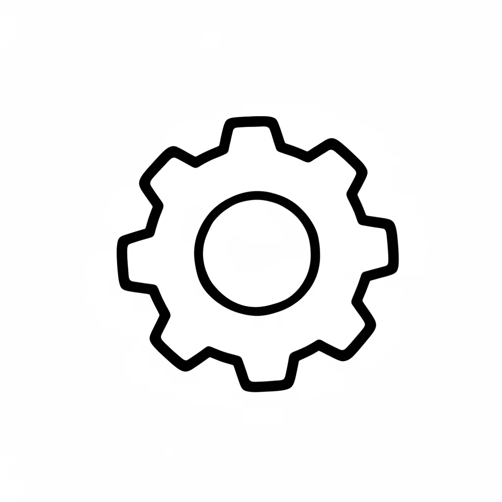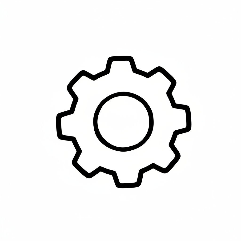 Schwarzes Umriss-Icon eines Zahnrads auf weißem Hintergrund, oft für Einstellungen verwendet.