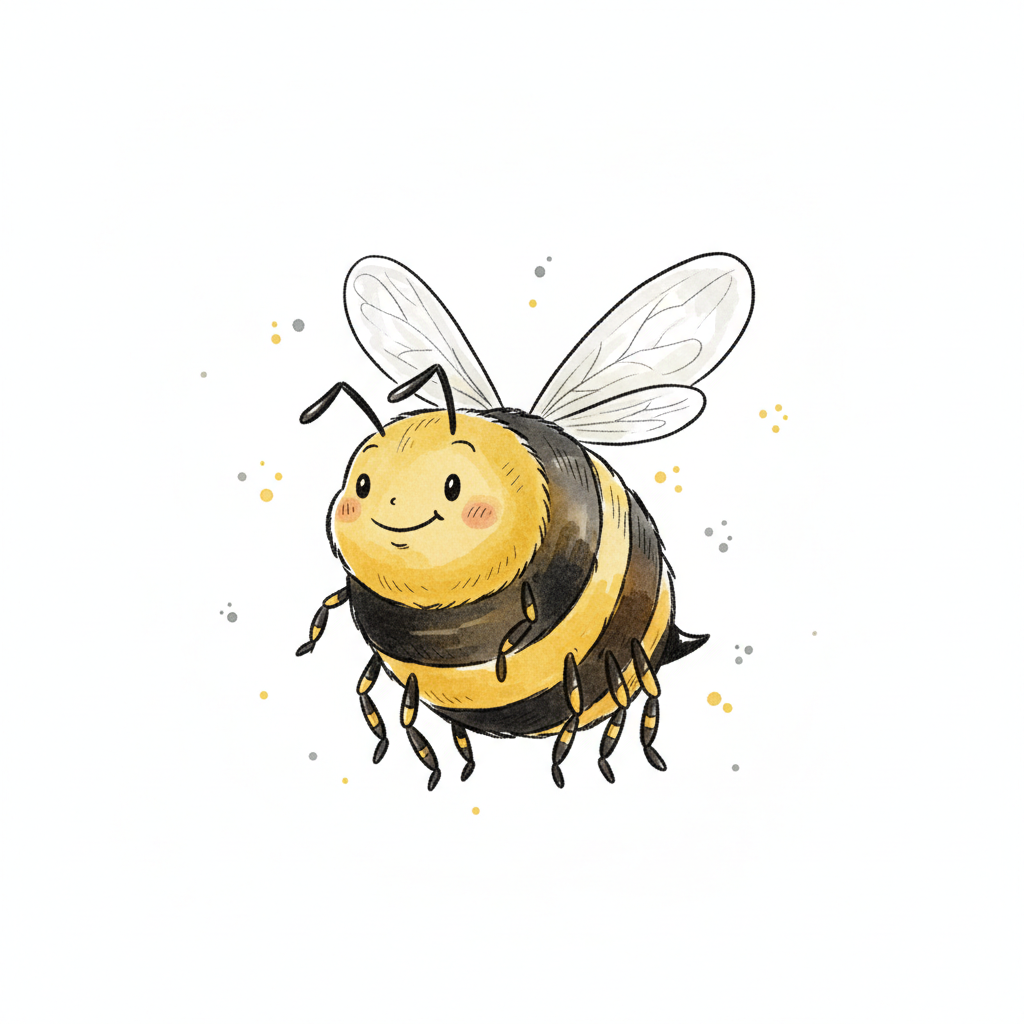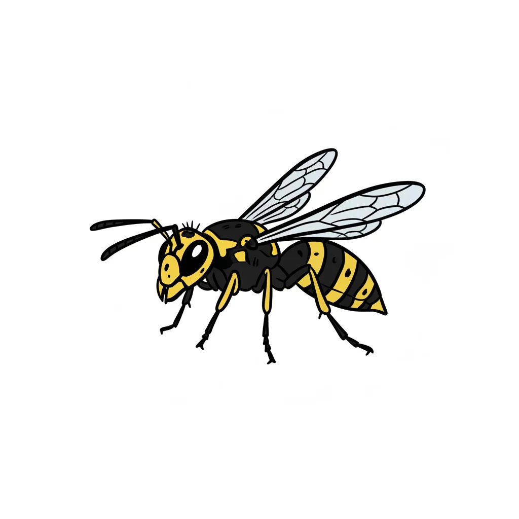 Eine zeichnerische Darstellung einer Biene mit gelben und schwarzen Streifen.