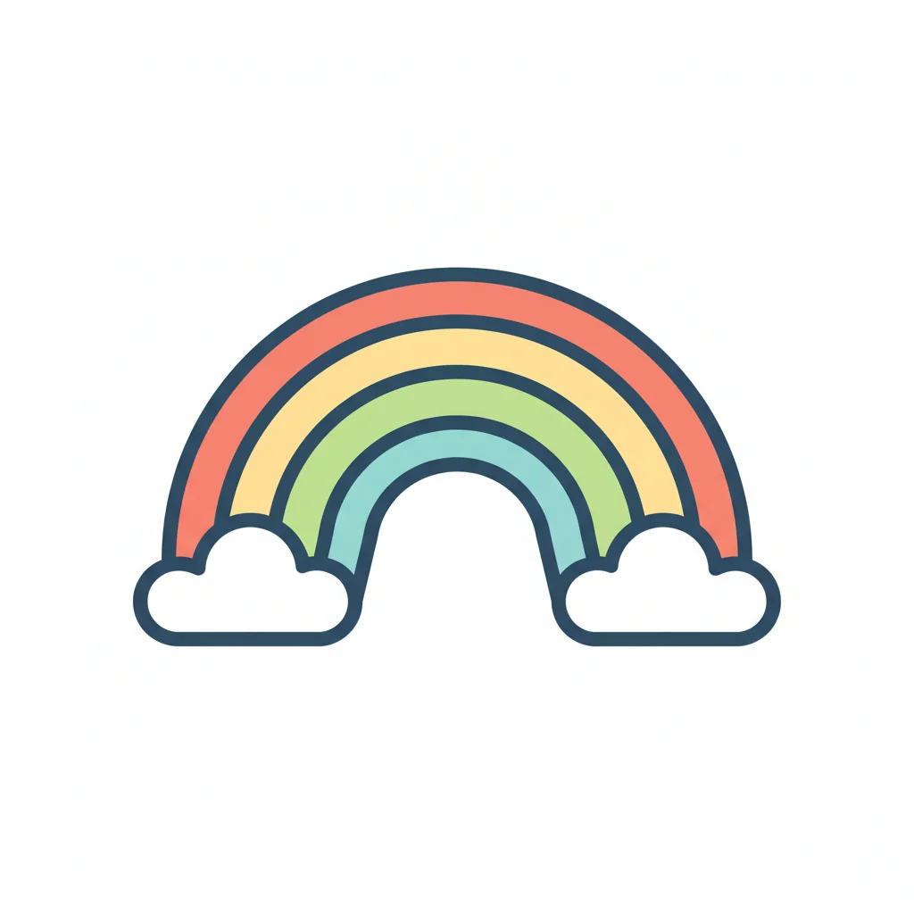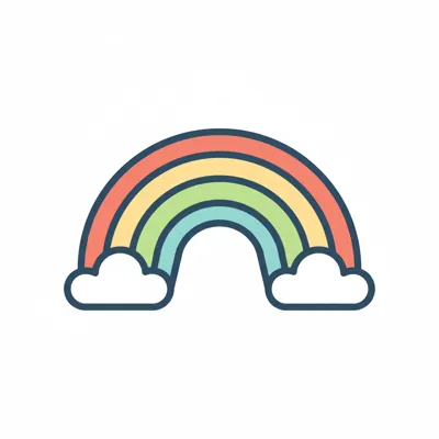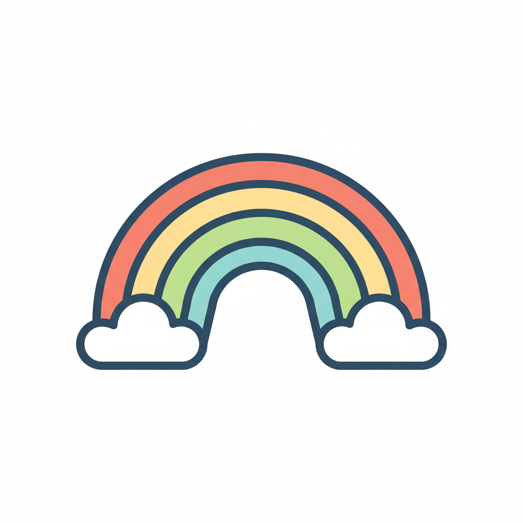 Bunter Regenbogen mit Wolken in einfacher, grafischer Darstellung.