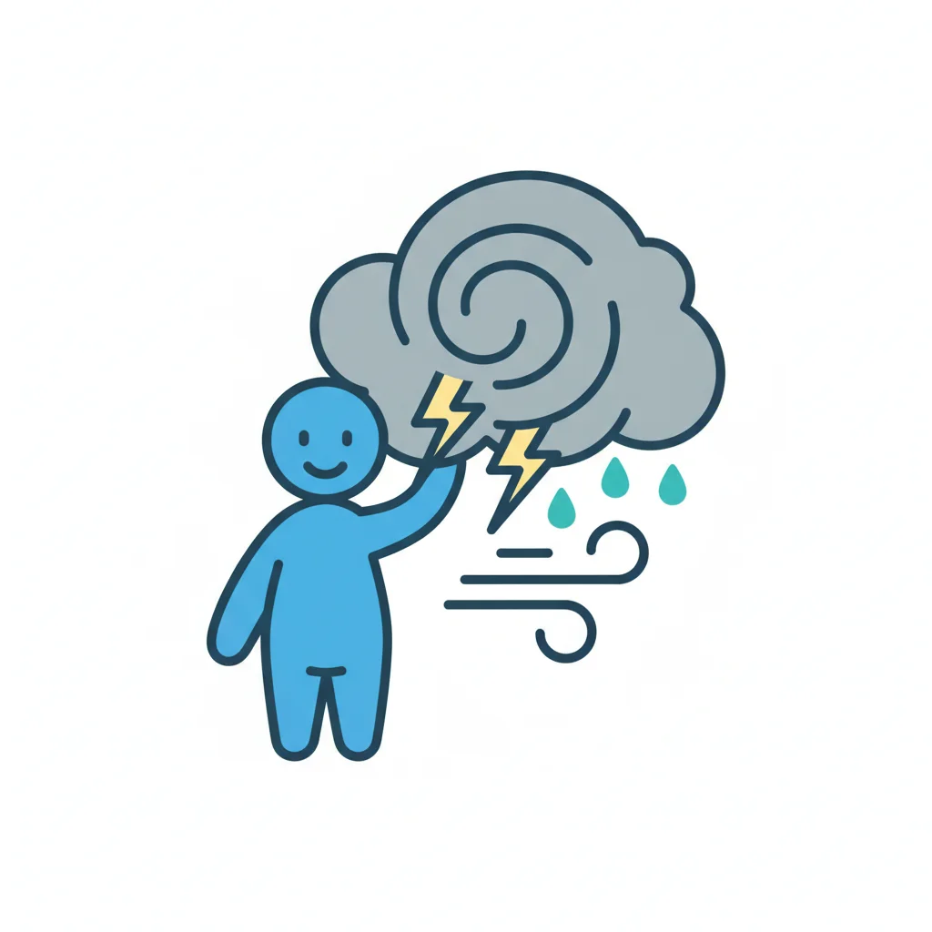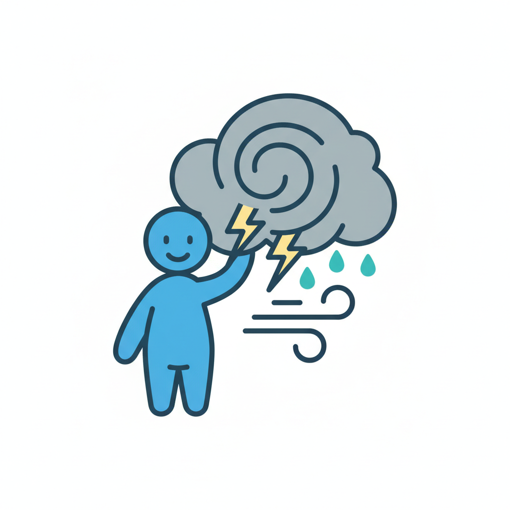 Ein Wolkensymbol mit Blitz, das Sturm oder Wetterunruhen symbolisiert.