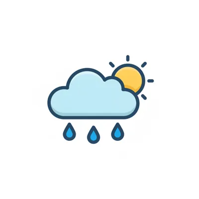 Wolkiges Wetter mit Regen und Sonne.