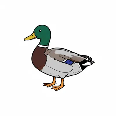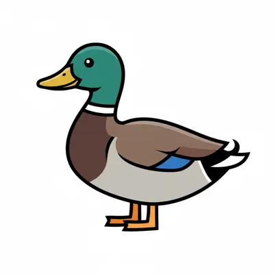 Eine einfache, skizzenhafte Darstellung einer Ente.