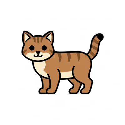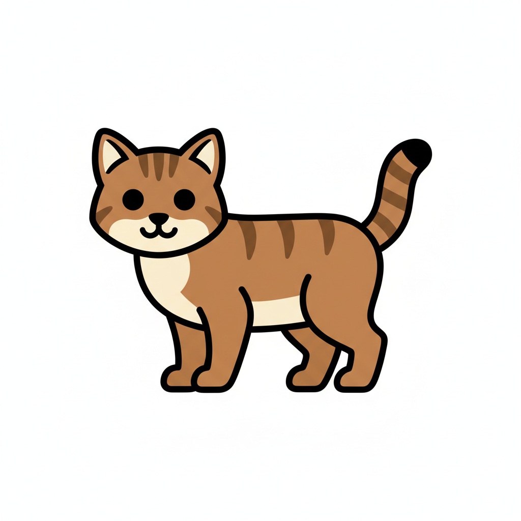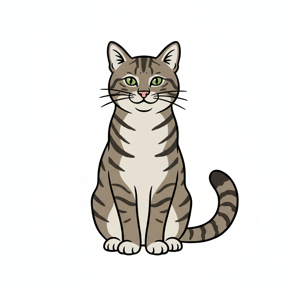 Eine niedliche, cartoonartige Katze mit gestreiftem Fell.