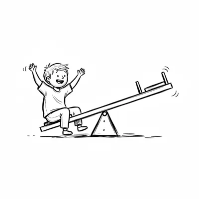 Glückliches Kind auf einer Wippe, die Arme in die Luft gestreckt. Schwarz-weiß-Skizze.