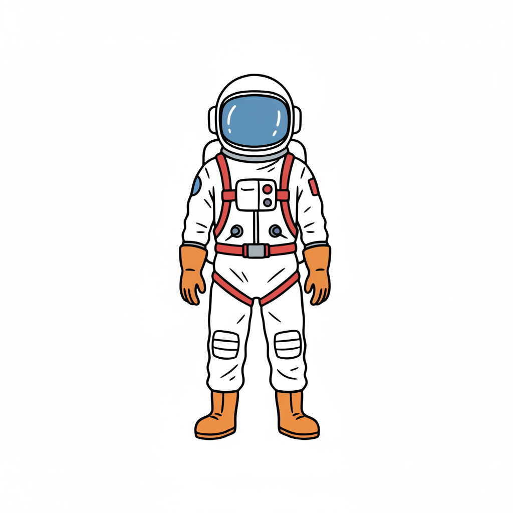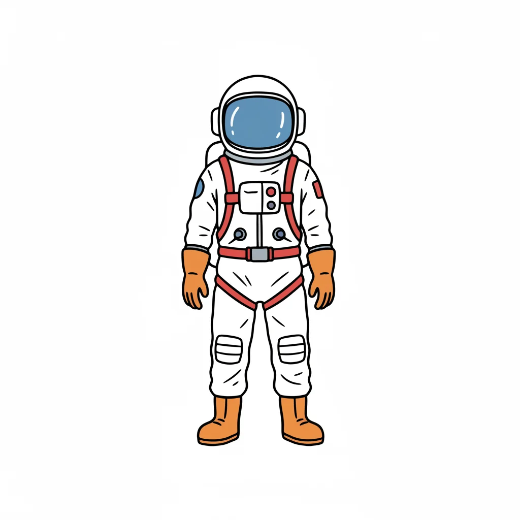 Ein Astronaut in einem weißen Raumanzug steht aufrecht.