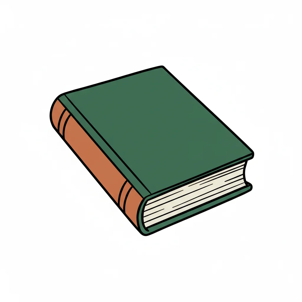 Ein geschlossenes, grünes Buch mit braunem Rücken.