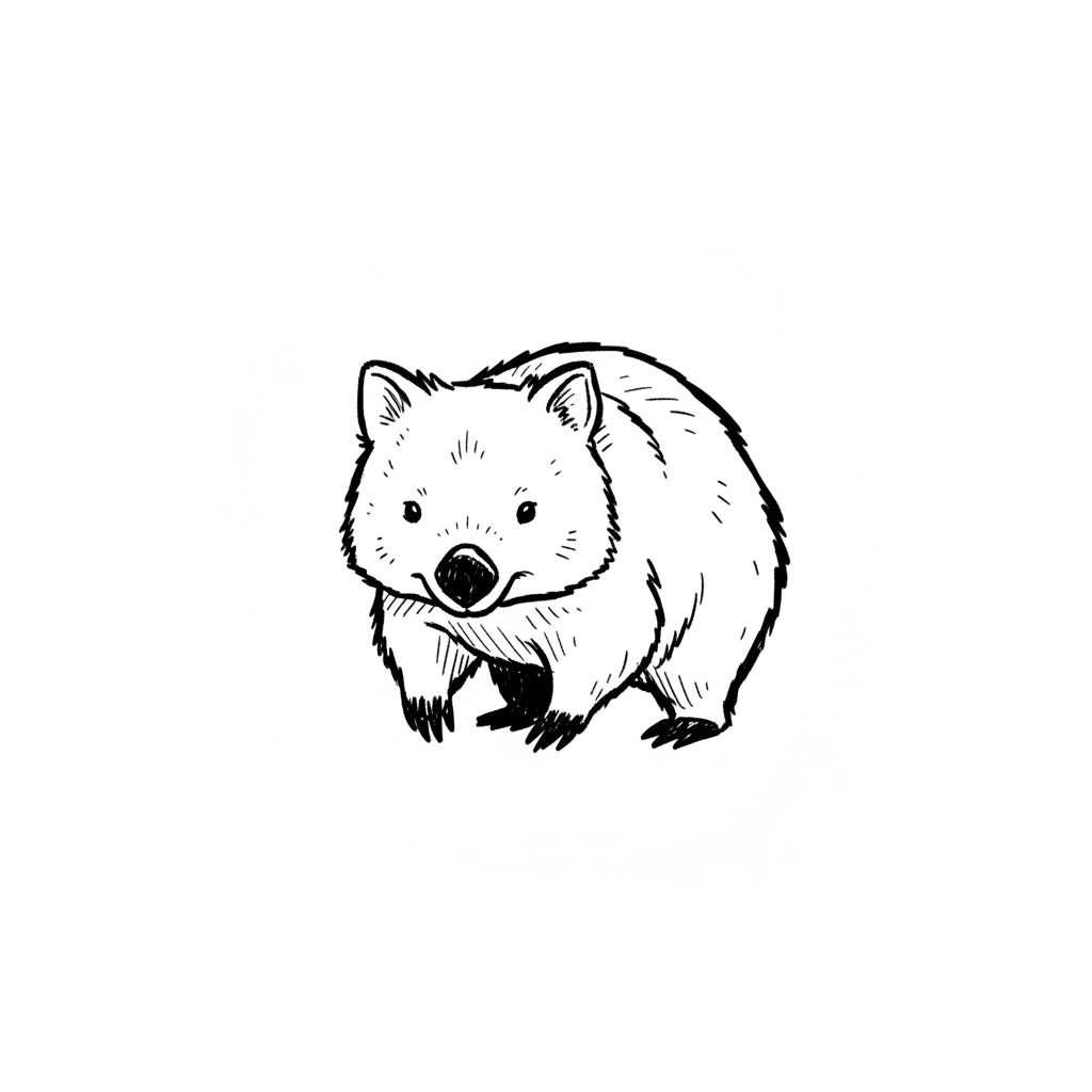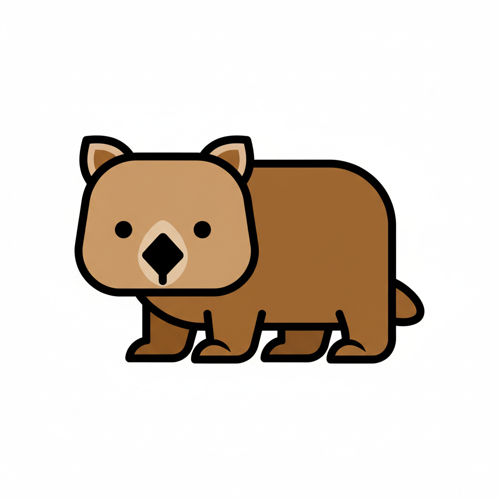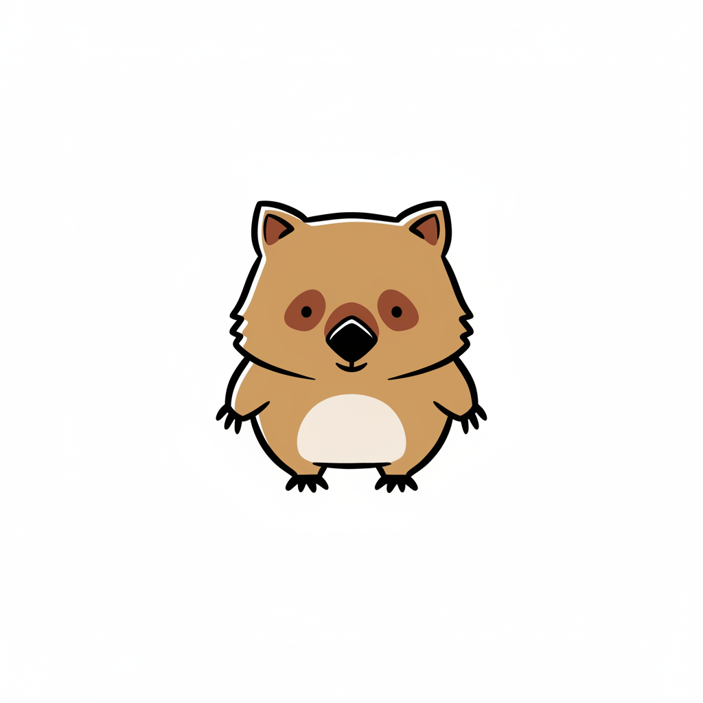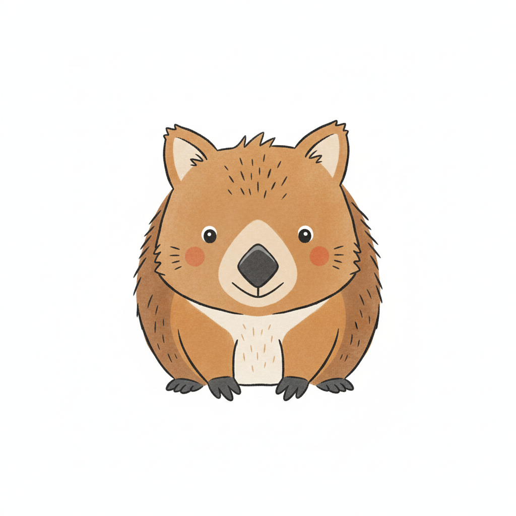 Ein niedlicher, cartoonhaft gezeichneter Wombat mit runden Formen.