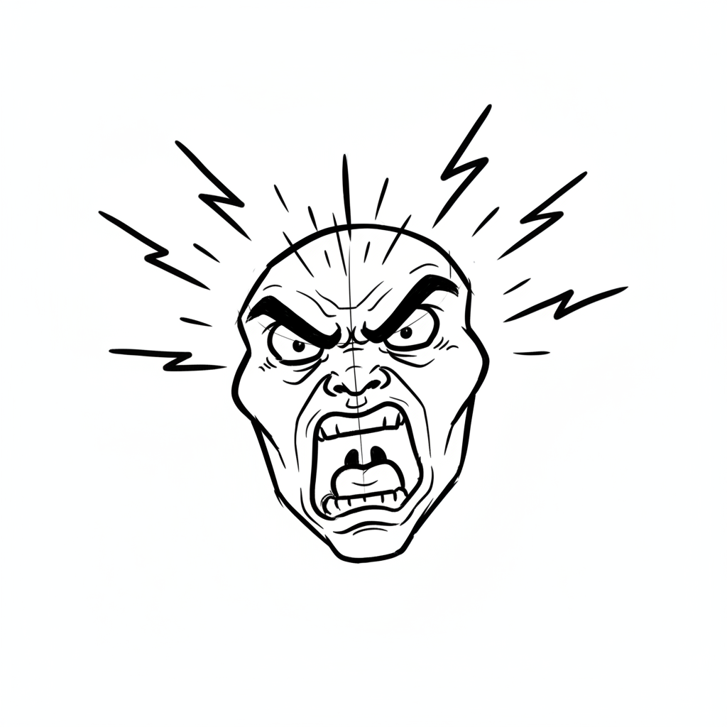 Ein wütendes Gesicht mit Lippen verzerrt und Zornesblitzen.