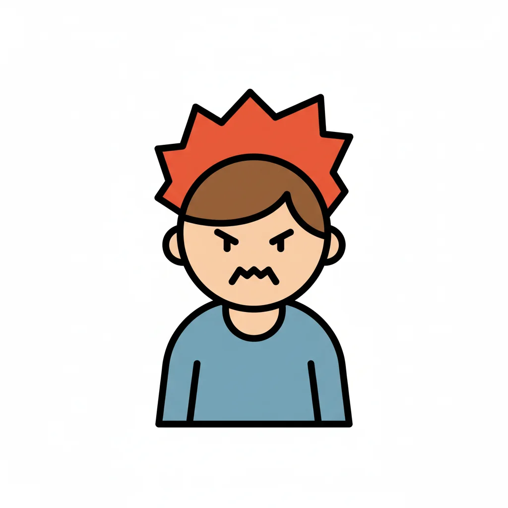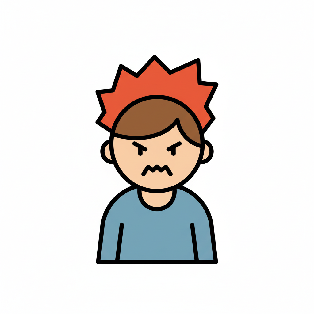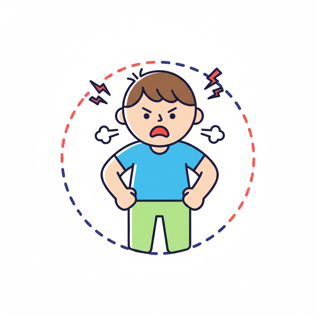Ein wütender Junge mit geschlossenen Fäusten und einem verärgerten Gesichtsausdruck.