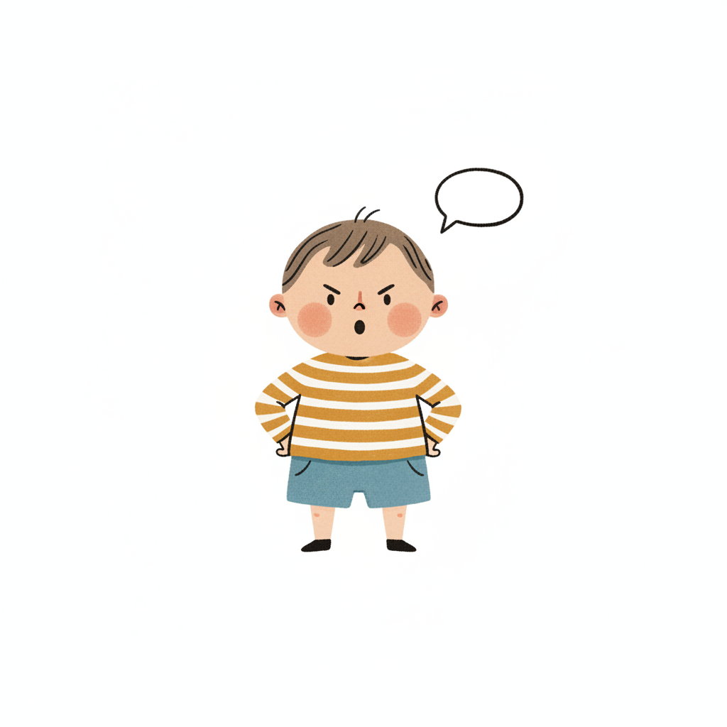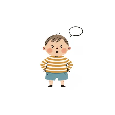 Ein wütender Junge im gestreiften Shirt mit Sprechblase.