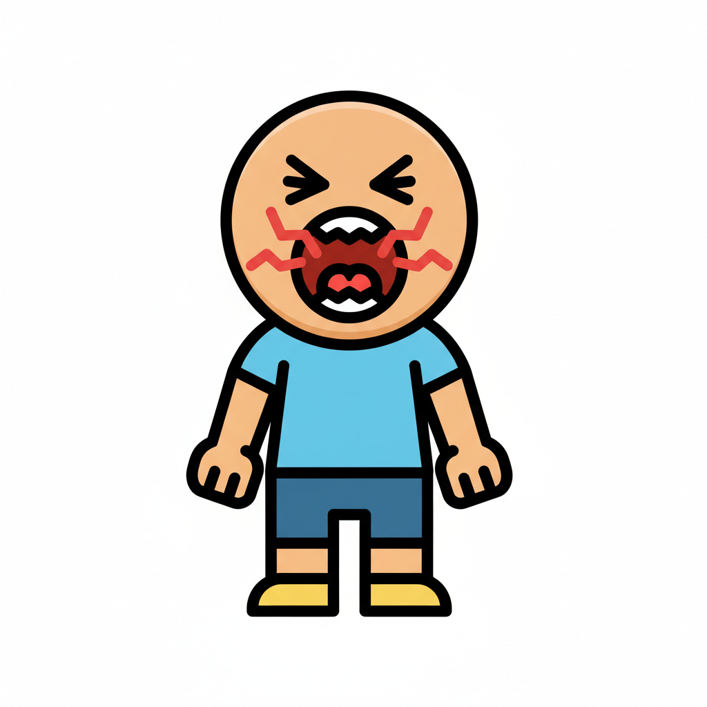 Ein Cartoon-Charakter schreit wütend mit einer roten Mimik.