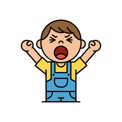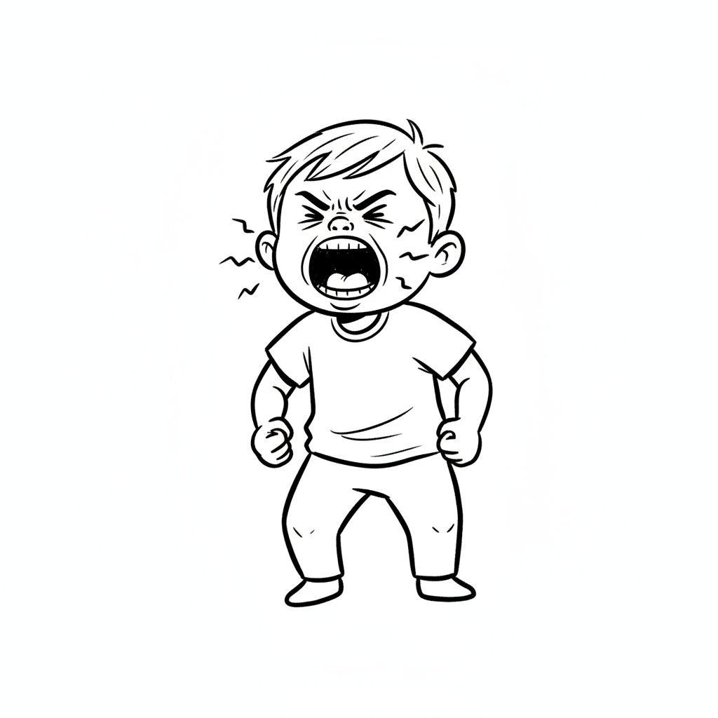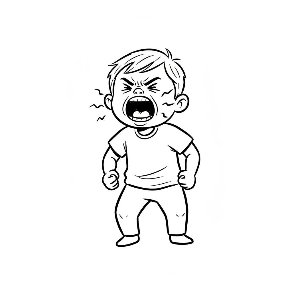Ein wütender Junge schreit und zeigt seine Frustration.