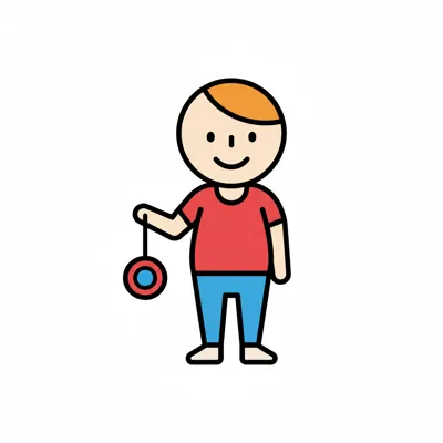 Cartoonfigur eines lächelnden Jungen mit orangefarbenem Haar, der ein Yo-Yo hält.