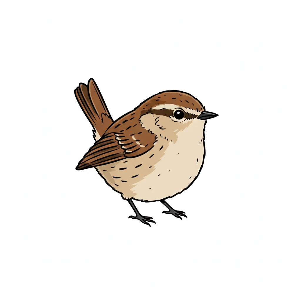 Ein kleiner brauner Vogel mit runder Form und kurzen Beinen.