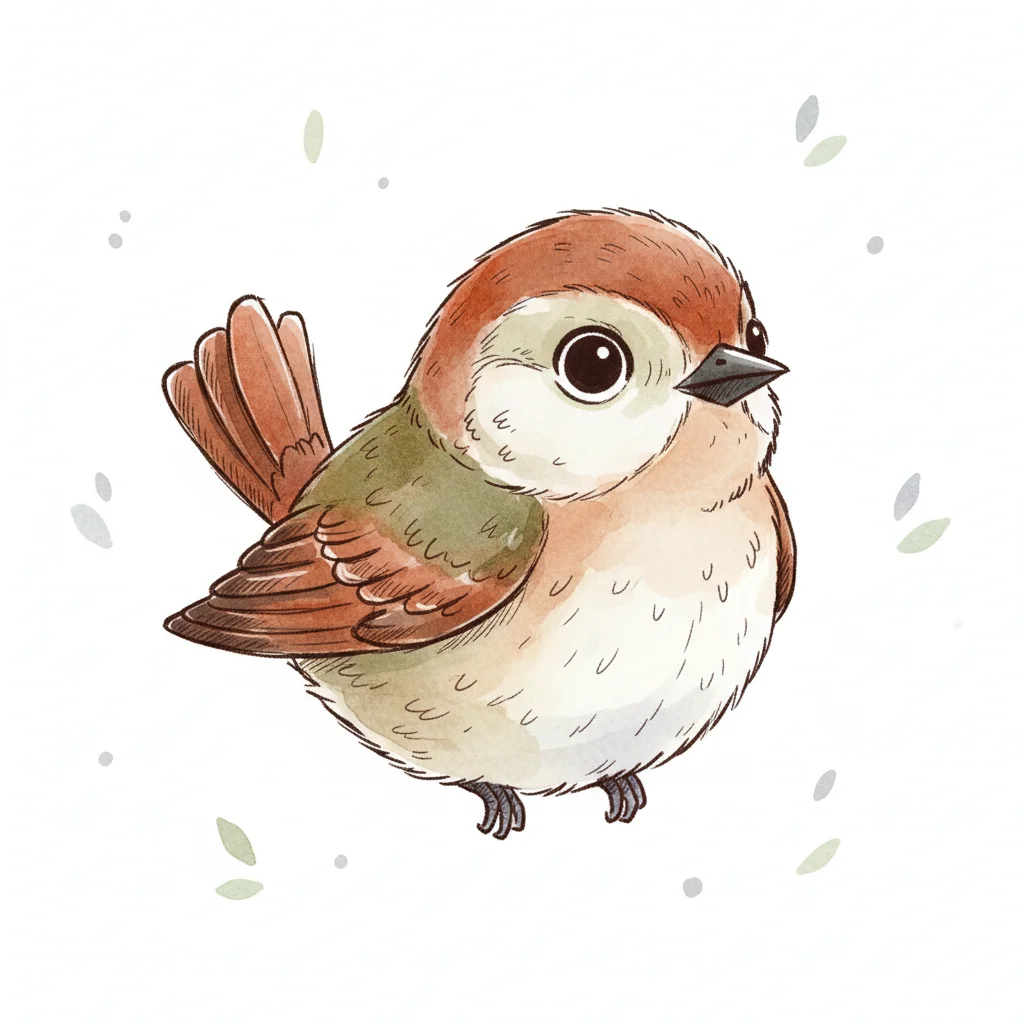 Niedlicher, kindgerecht illustrierter Gegenstand als einzelner, zentrierter Gegenstand vor weißem Hintergrund, im frech-nordischen Aquarell-Skizzenstil. Klare, leicht wackelige Tuschekonturen, sichtbare Pinsel- und Strichtextur, dezente Schraffuren, weiche handgemalte Farbflächen in gedeckten Farben. Runde, einfache Formen. Keine harten Schatten, sondern sanfte, transparente Aquarellschichten. Leicht raue, handgezeichnete Linien statt glatter Vektorkanten. Subtile, vereinzelte Kritzelpunkte oder kleine Details im Hintergrund, aber keine echte Szene. Gegenstand steht oder schwebt mittig. Insgesamt charmant, humorvoll, warm und handgemacht wirkend, wie eine moderne Kinderbuchillustration auf weißem Hintergrund.