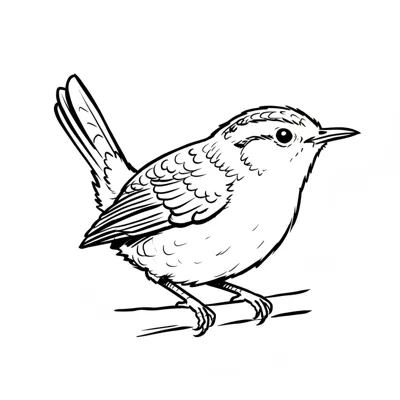 Ein skizziertes Vogelmotiv auf einem Ast.