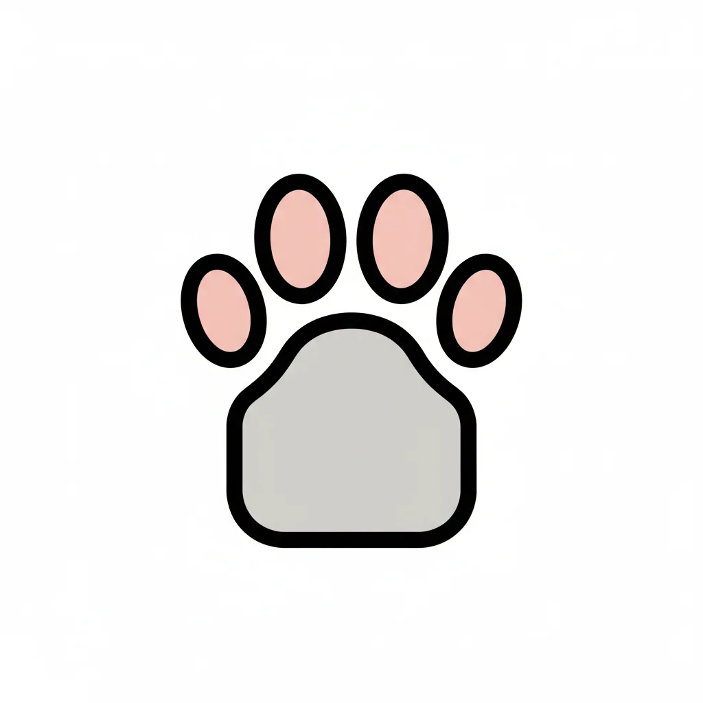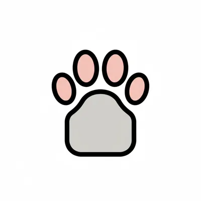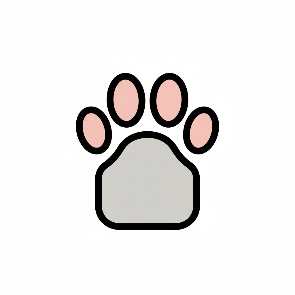 Stilisierter Pfotenabdruck mit grauer Haupt- und rosa Zehenballen auf weißem Grund.