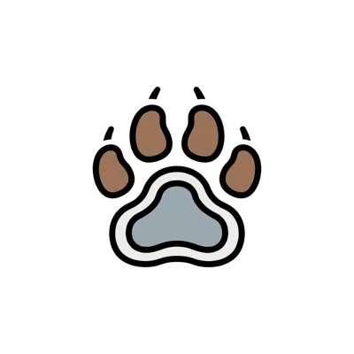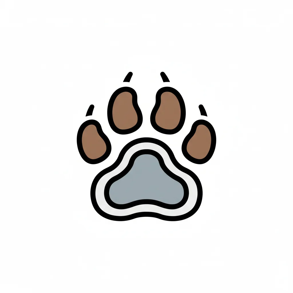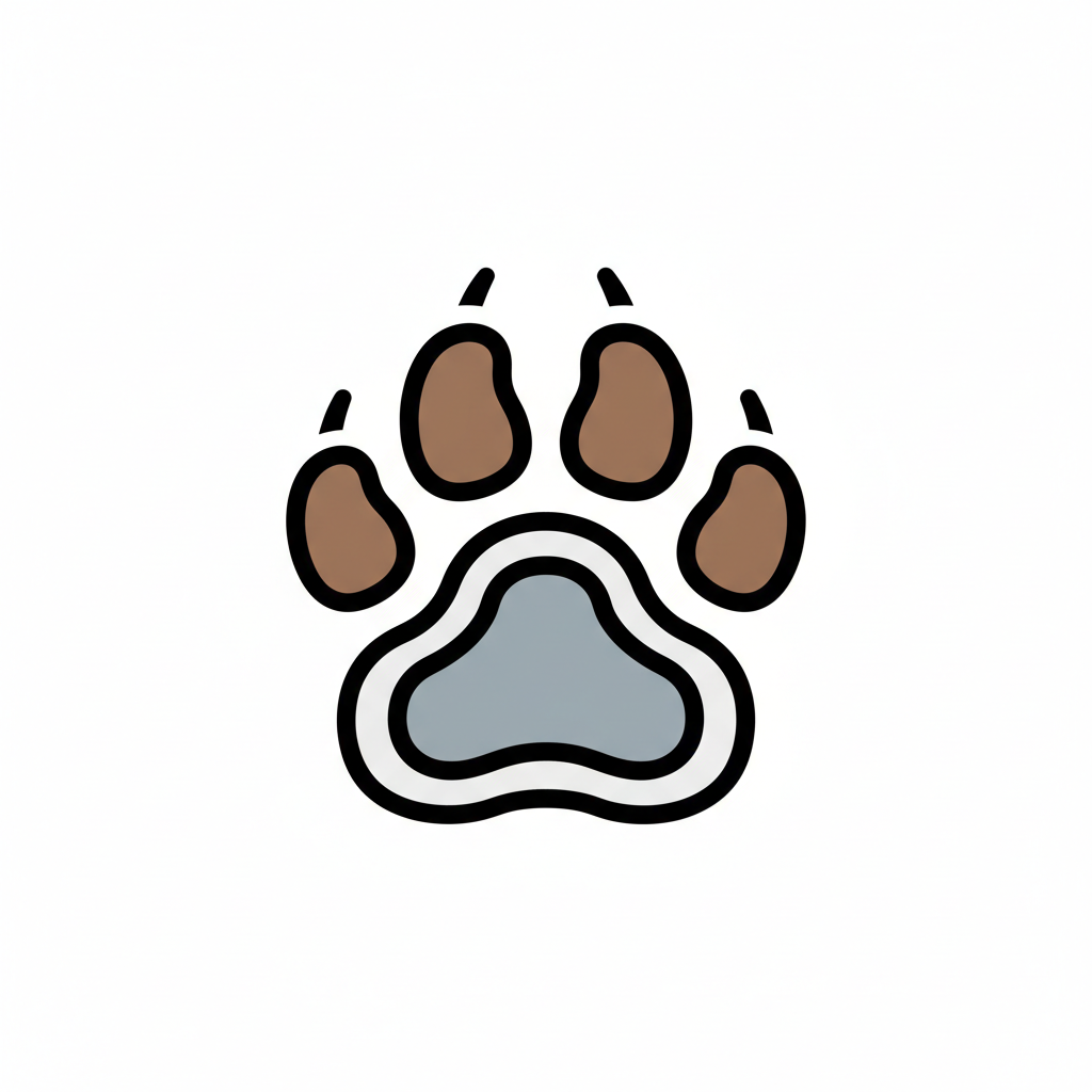 Farbige Illustration eines Pfotenabdrucks mit braunen Zehen und grauem Ballen auf weißem Grund.