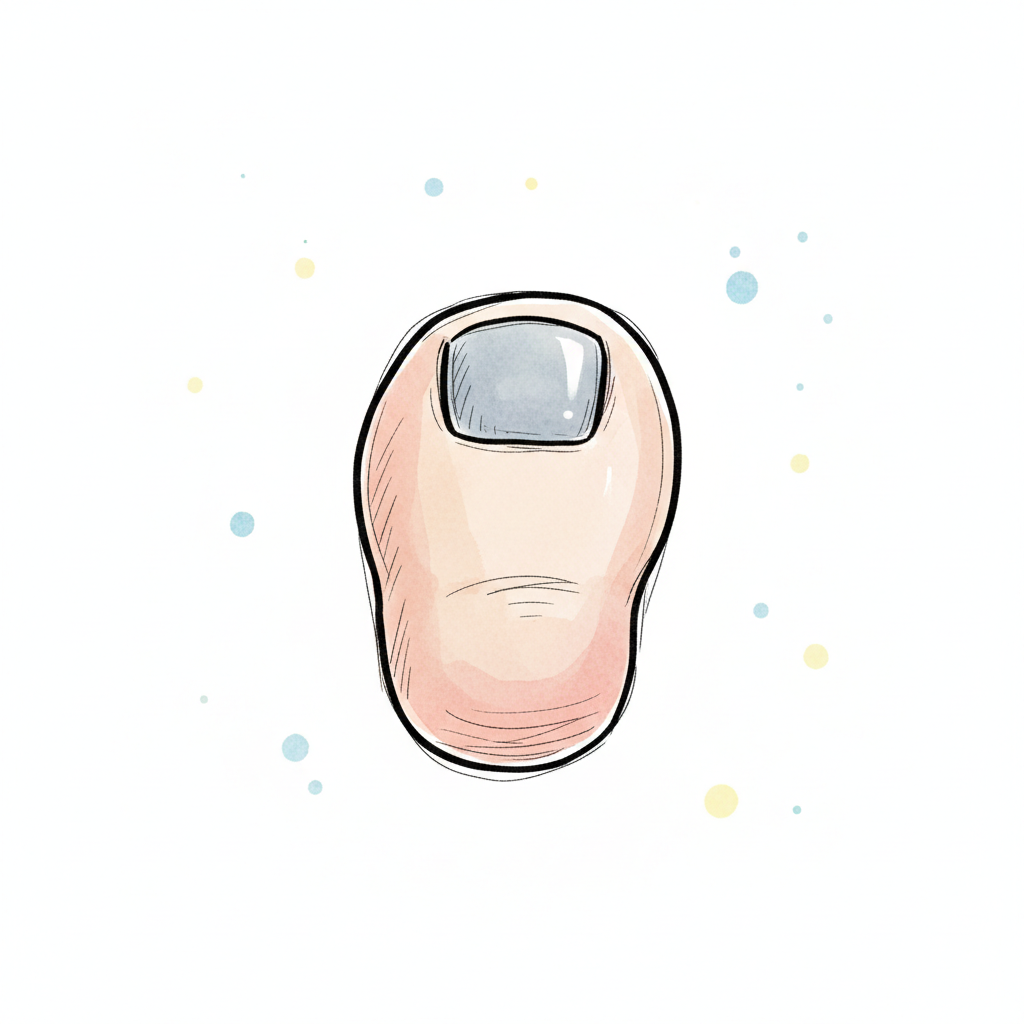 Illustration eines einzelnen Zehs mit lackiertem Nagel und bunten Punkten im Hintergrund.