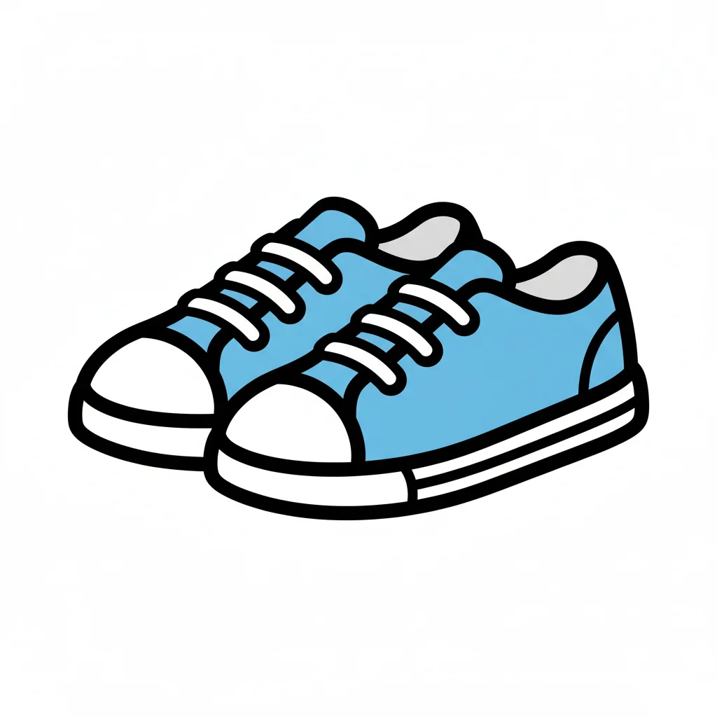Ein Paar hellblaue Turnschuhe mit weißen Schnürsenkeln und Zehenkappen, im Cartoon-Stil.