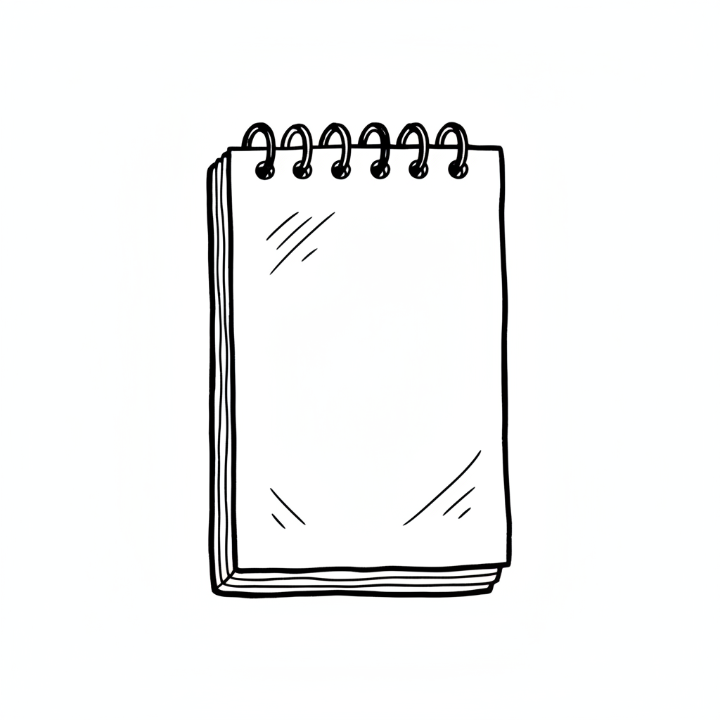Schwarz-weiß-Illustration eines leeren Spiralblocks.