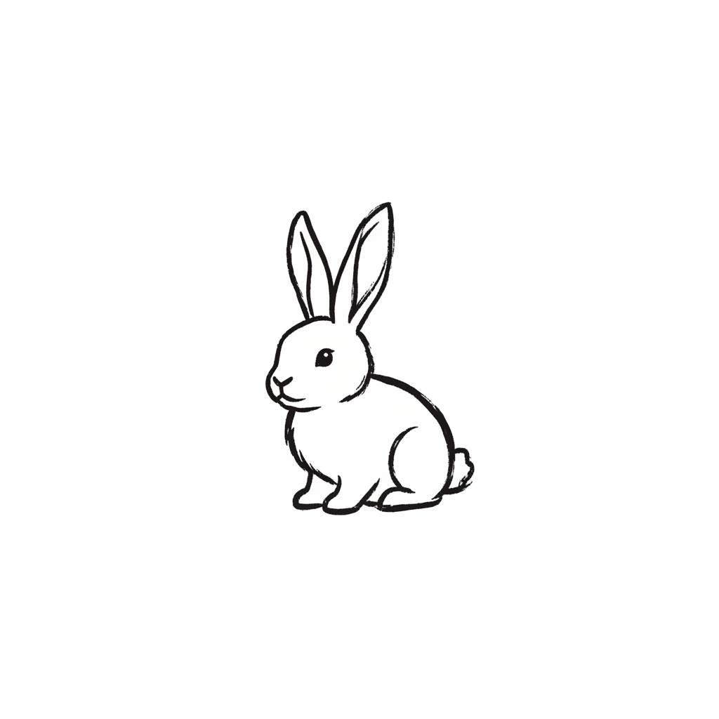 Ein einfacher, stilisierter Hase mit großen Ohren und niedlicher Haltung.