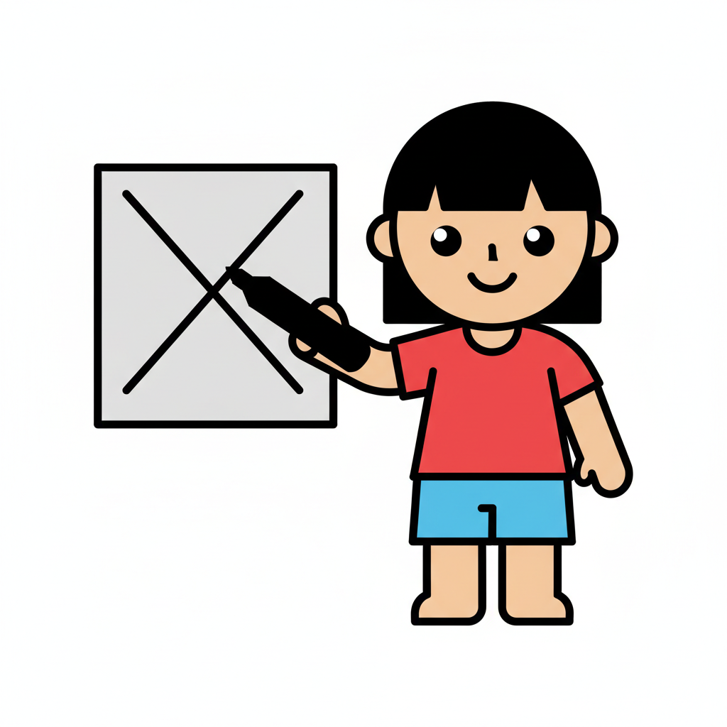 Minimalistische Vektorillustration im flächigen Icon-Stil. Sehr einfache, reduzierte Formen mit klaren, dicken Konturen und wenigen Details. Flächige Farben ohne Verläufe oder Texturen, ruhige Farbpalette, klare Silhouette und gut lesbare, freundliche Figur. Moderne, kindgerechte Lernillustration im Stil einfacher Piktogramme, sauberer Hintergrund und übersichtliche Komposition. Hoher Kontrast, isoliert auf weißem Hintergrund. WICHTIG: KEIN TEXT im Bild. Hintergrund: Rein weiß.