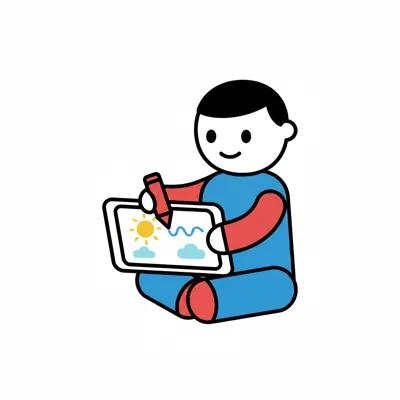Ein Kind malt mit einem Stift auf einem Tablet.