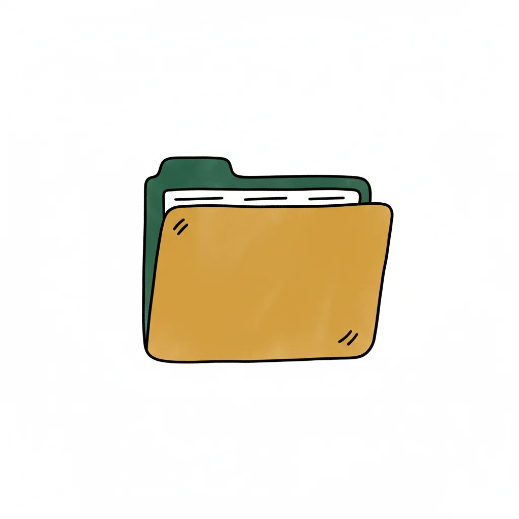 Ein gezeichneter Ordner in gelb und grün auf weißem Hintergrund.