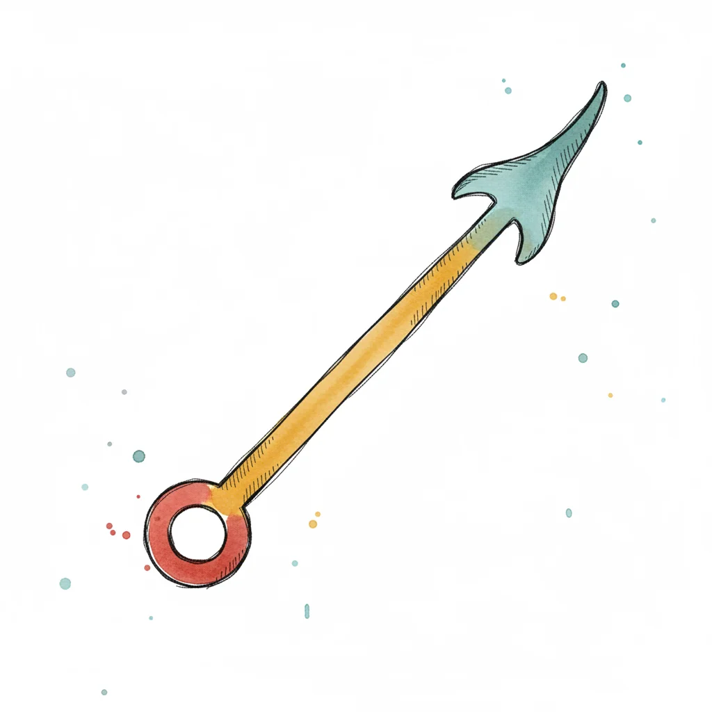 Illustrierte Pfeil- oder Zeigerform in Aquarellfarben mit blauer Spitze und rotem Ring.