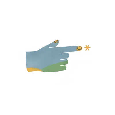 Illustrierte Hand in Blau und Grün zeigt mit dem Zeigefinger auf einen orangefarbenen Stern.