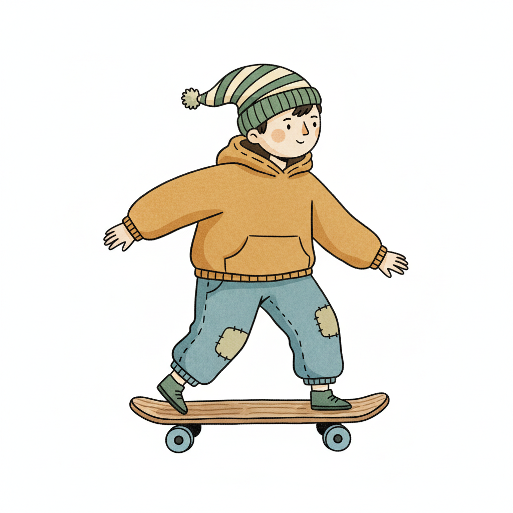 skateboard fahren skateboard junge freizeit nordic-bilderbuch-stil