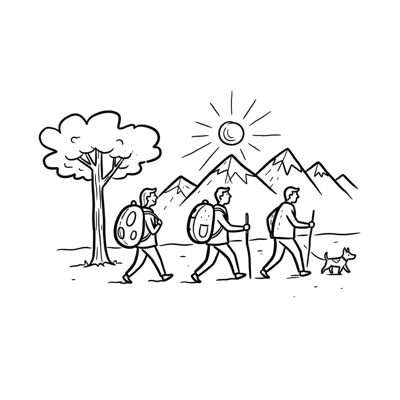 ausflug lineart-stil wandern natur freizeit