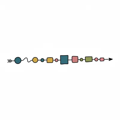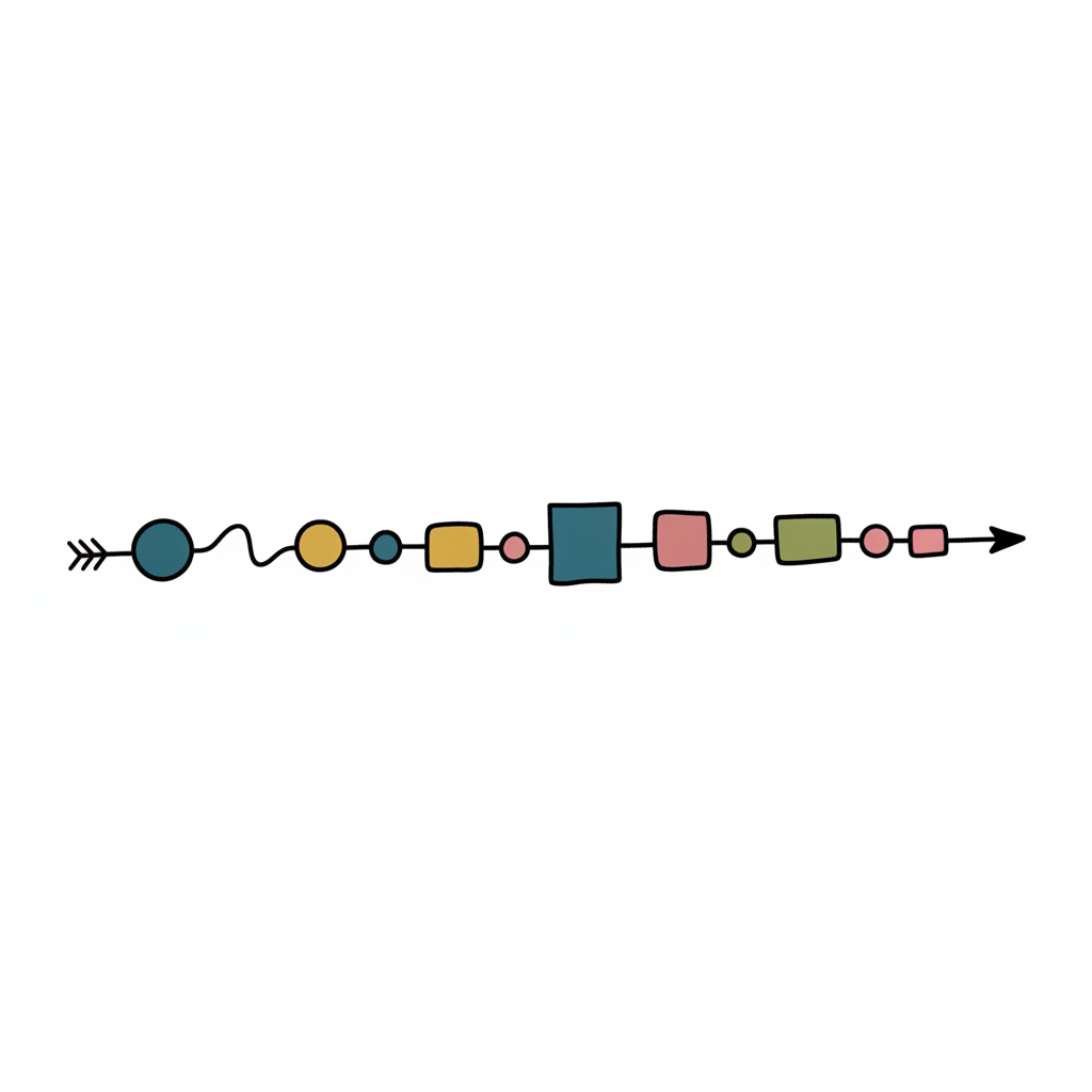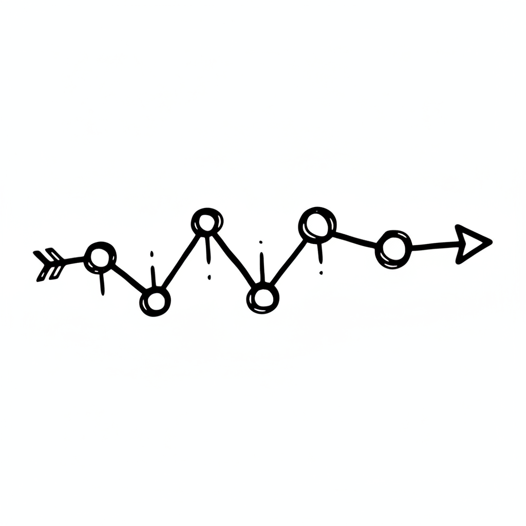 Handgezeichnete Linie mit verbundenen Punkten und Pfeilenden, die einen Pfad oder Fortschritt darstellt.