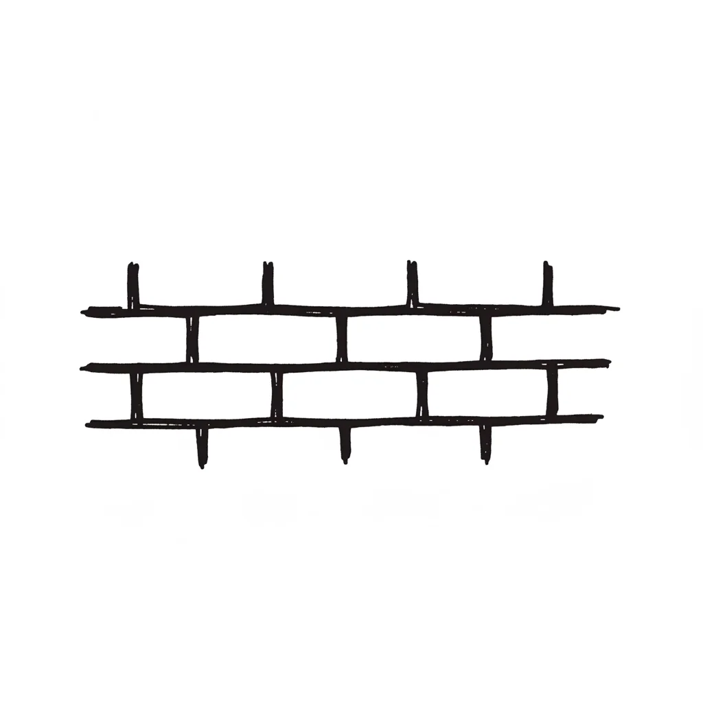 Handgezeichnetes, schwarz-weißes Muster einer Ziegelmauer auf weißem Hintergrund.