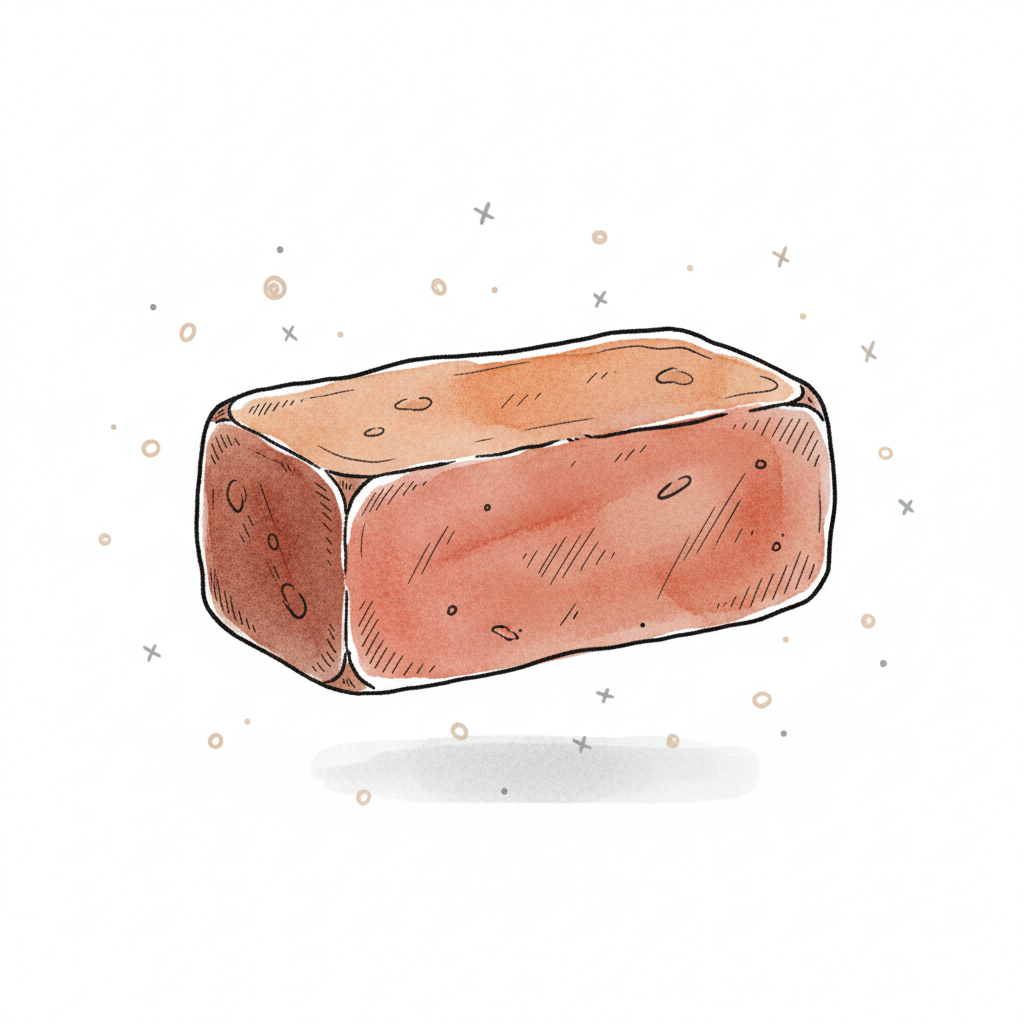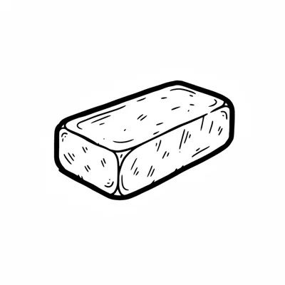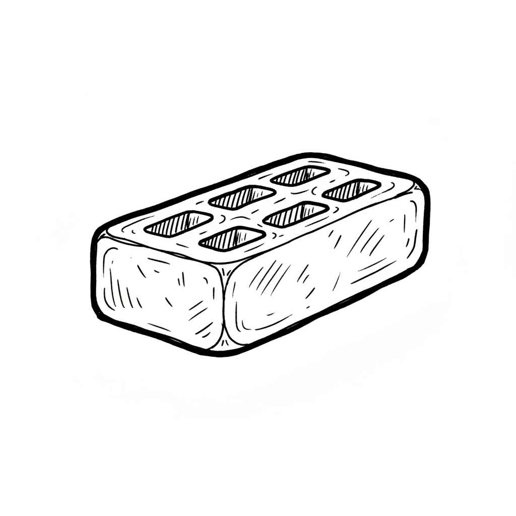 Schwarz-weiße Skizze eines Ziegelsteins mit Löchern, gezeichnet im Cartoon-Stil.