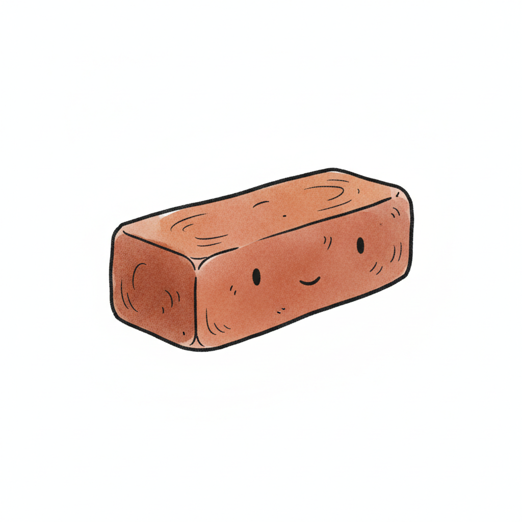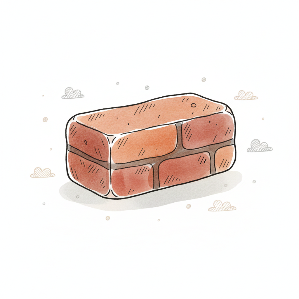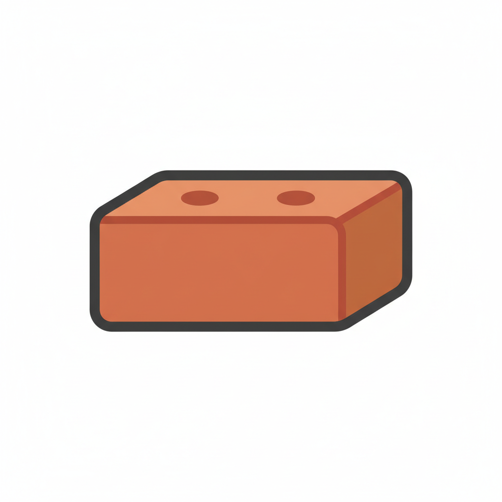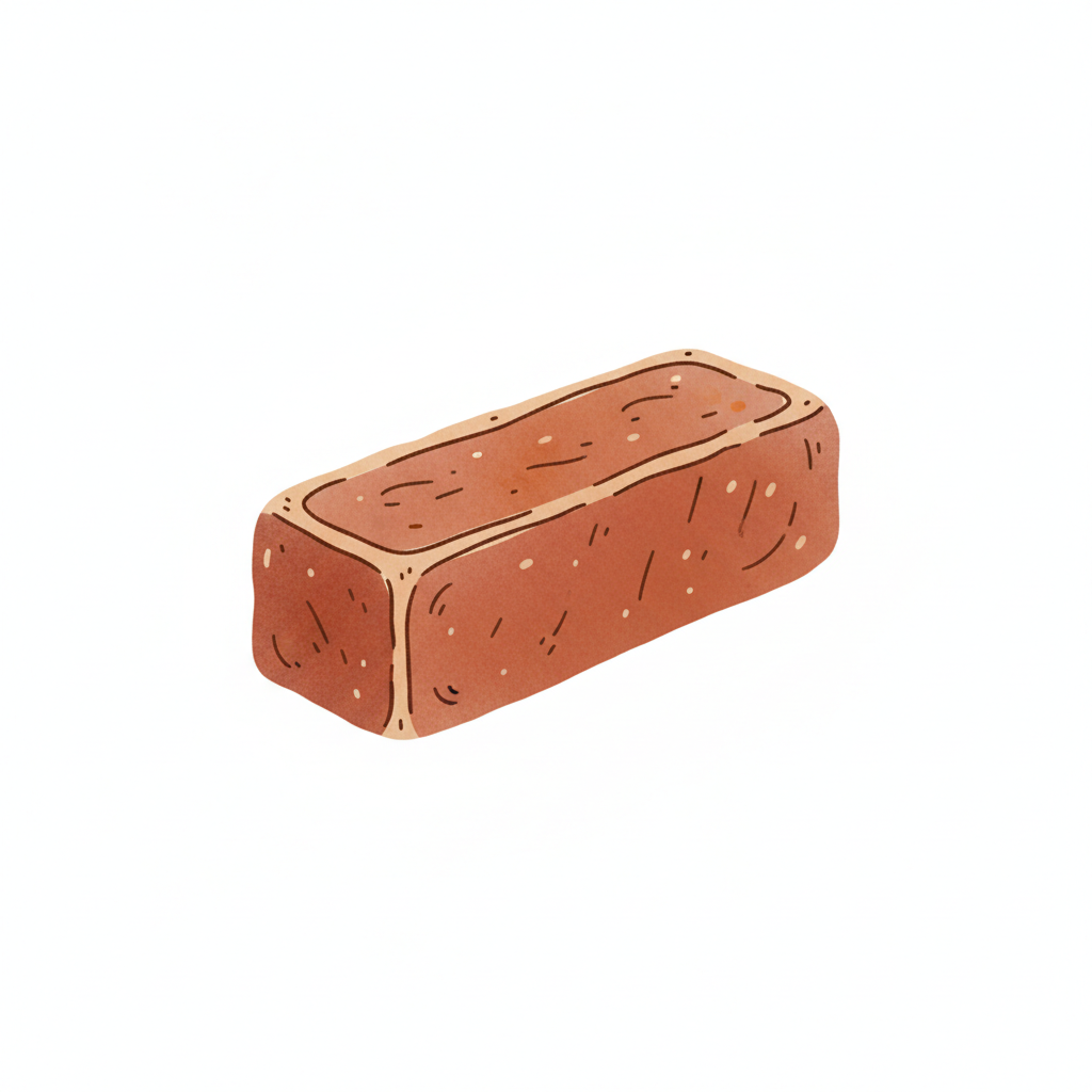 Eine einfache, cartoonartige Illustration eines einzelnen, rötlich-braunen Ziegels auf weißem Hintergrund.