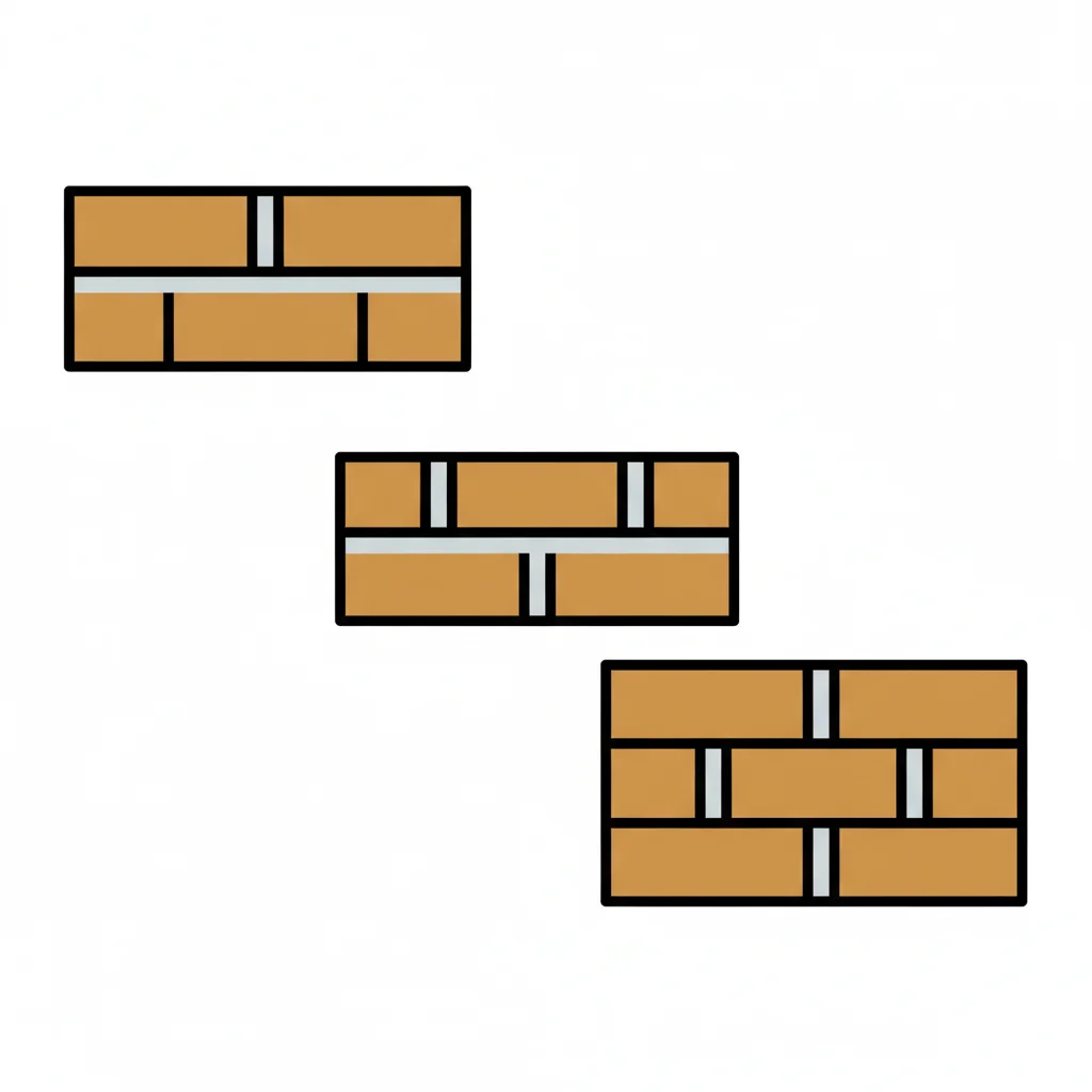 Drei stilisierte Ziegelsteinmuster/Mauerwerksverbände auf weißem Hintergrund.