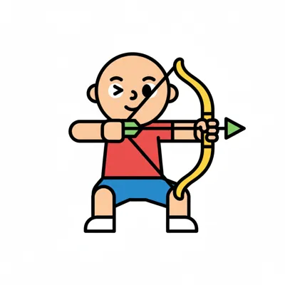 Ein junger Junge zielt mit einem Bogen und Pfeil.