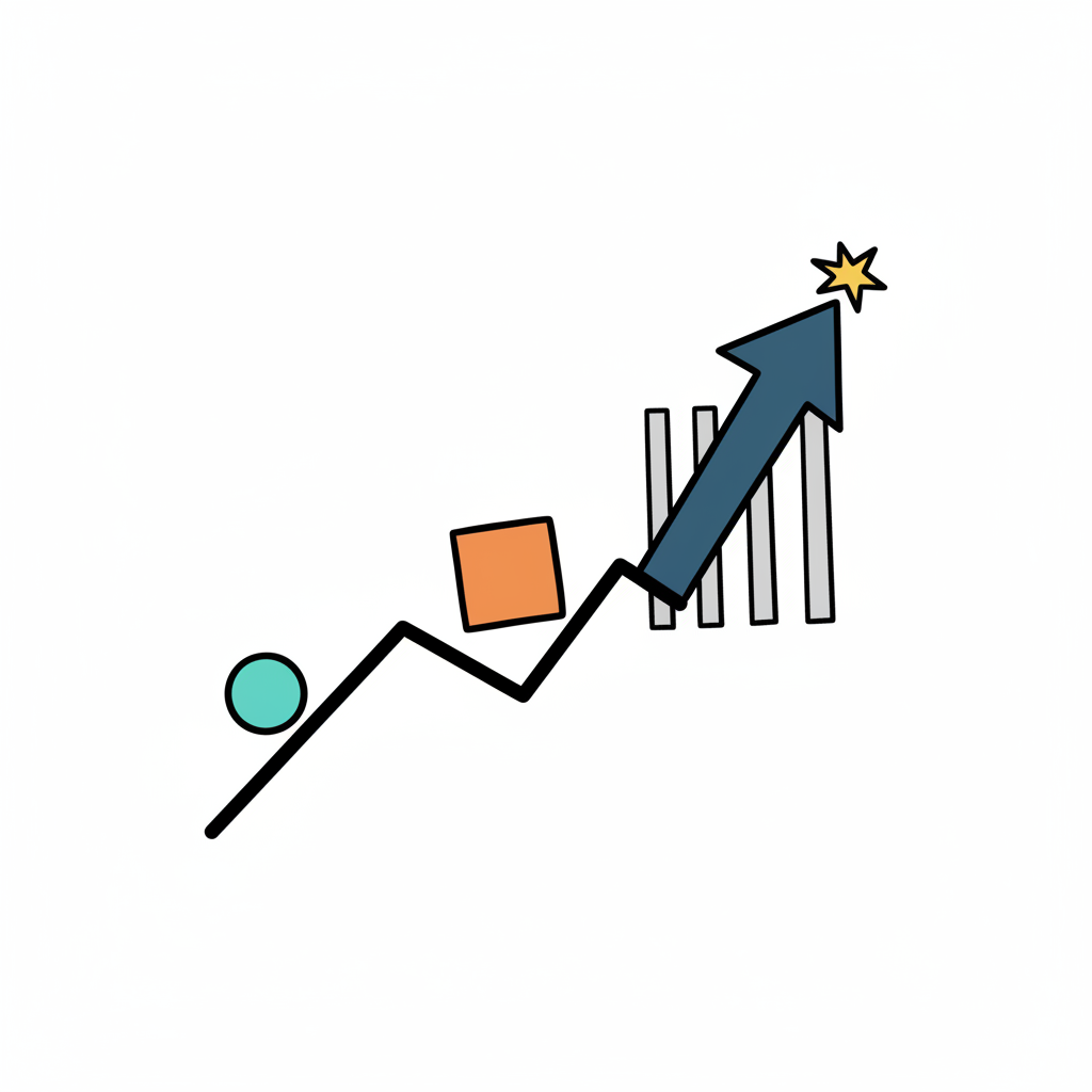 Diagramm mit aufsteigendem Pfeil zu einem Stern, symbolisiert Wachstum und Zielerreichung.