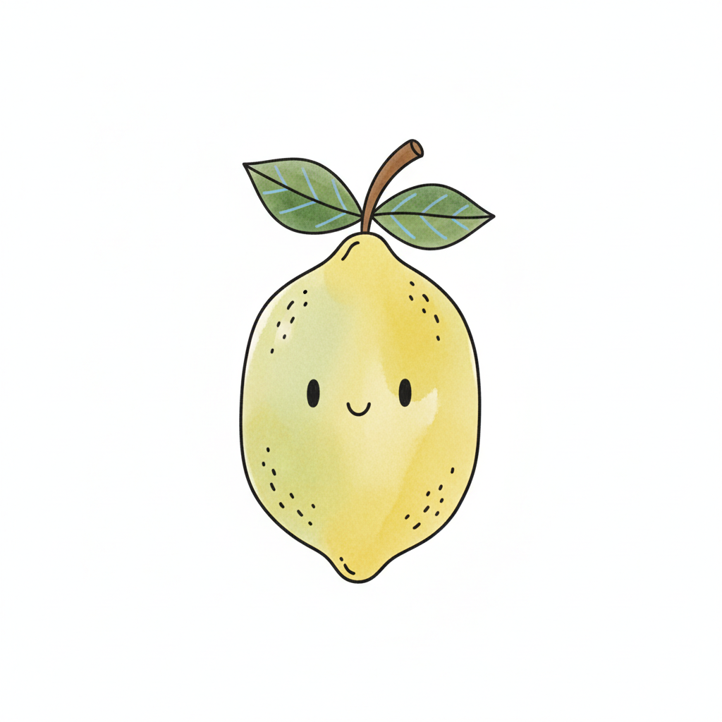 Eine süß gezeichnete Zitrone mit einem lächelnden Gesicht.