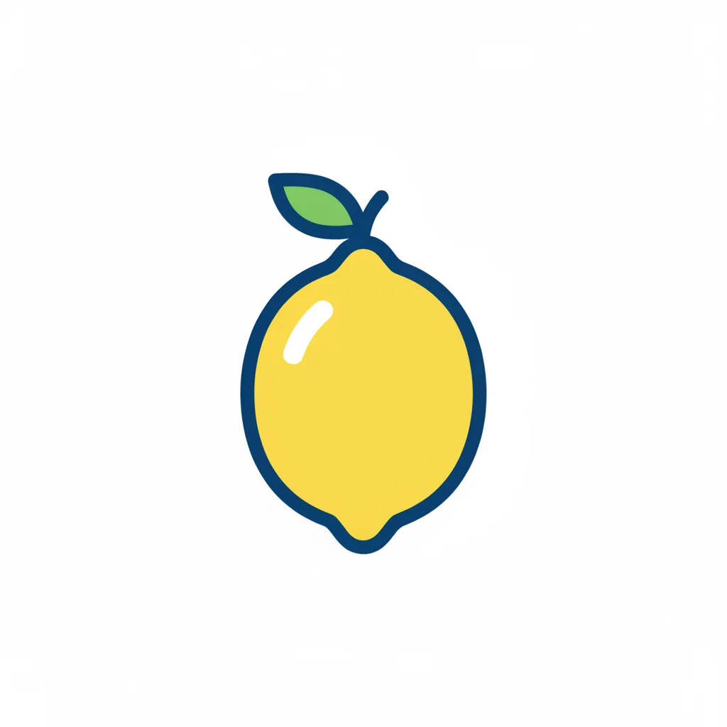 Ein stilisierter, gelber Zitrone mit grünem Blatt.