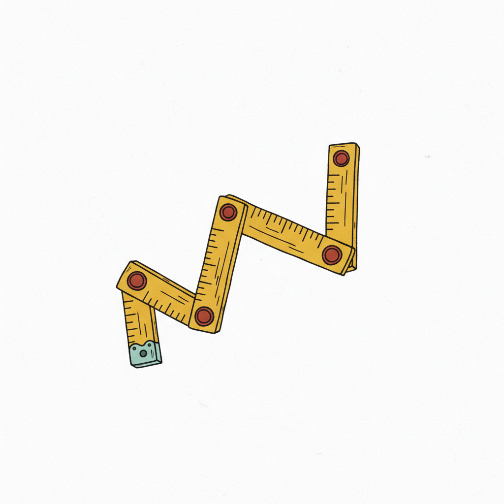 Illustration eines gefalteten Holz-Zollstocks auf hellem Hintergrund mit dezenten Formen.