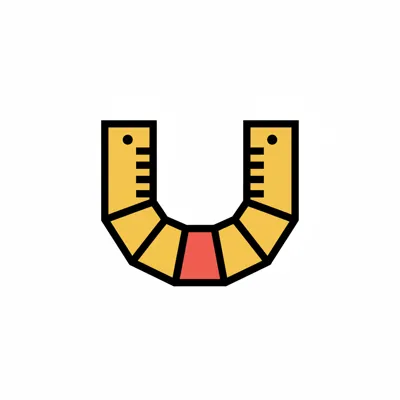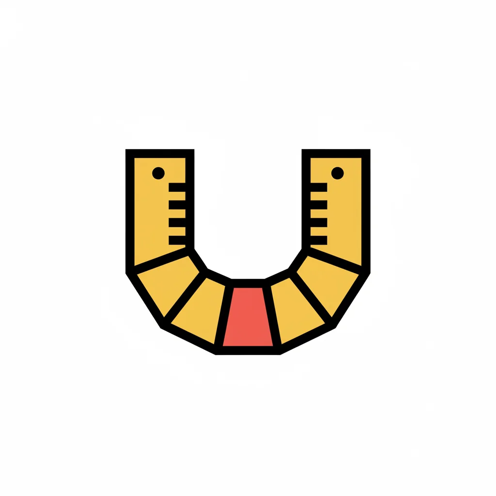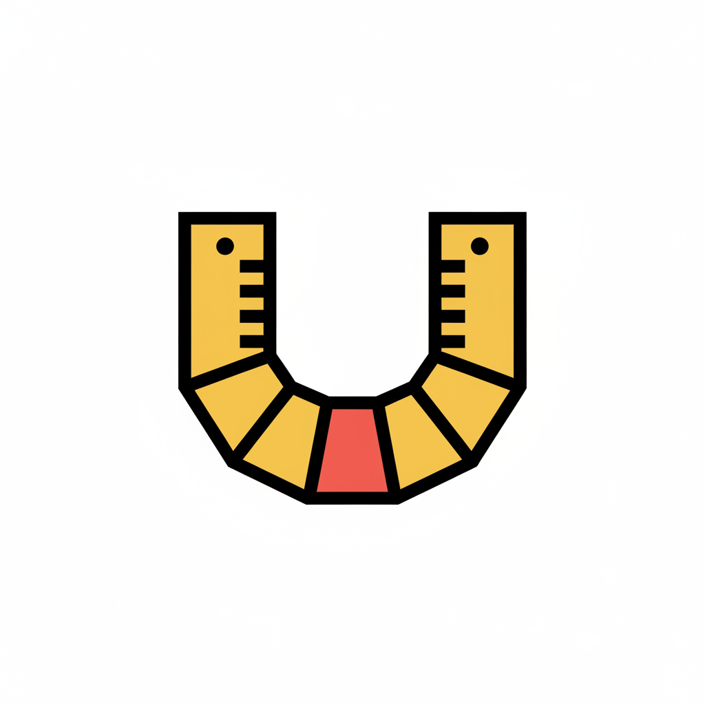 Ein stilisiertes U, geformt aus einem gelben Maßband mit schwarzen Markierungen und roten Segmenten.