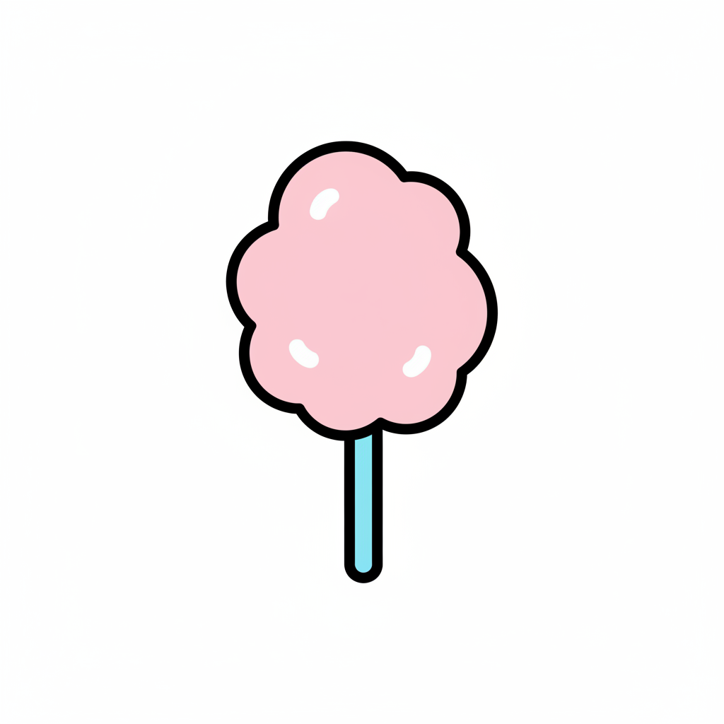 Niedliche rosa Zuckerwatte auf einem blauen Stiel, minimalistischer Cartoon-Stil.