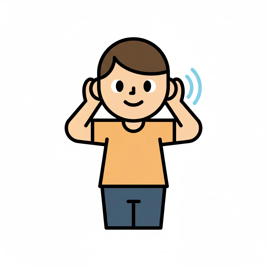 Junger Junge hält sich die Ohren zu und lächelt.