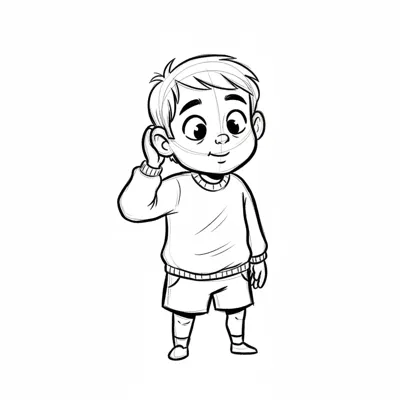 Ein lächelnder Junge in einem Pullover und Shorts, hört aufmerksam zu.